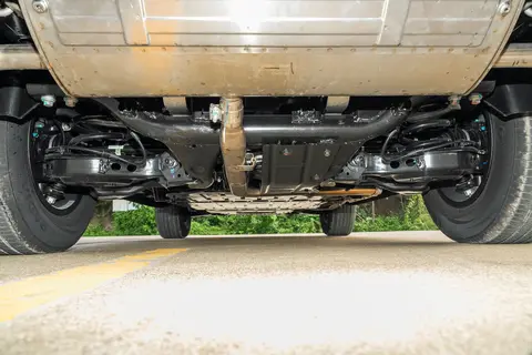 作为硬派越野SUV,捷途纵横G700的核心竞争力还是机械素质和越野能力。它用了非承载式车身结构,也就是大家说的“带大梁”,这种结构车身刚性更强,能扛住恶劣路况的冲击,走烂路心里更有底。在动力方面,它搭载了“鲲鹏超能混动CDM-O”系统,由一台2.0T混动专用发动机和前后双电机组成。系统综合功率高达665千瓦,综合扭矩1135牛·米,官方说零百加速只要4.6秒,这么大一个块头,这个动力表现确实够猛。匹配的是2挡DHT混动专用变速箱,换挡平顺,动力衔接也快。续航方面,它装了宁德时代的34.1千瓦时电池包,CLTC工况纯电续航150公里,平时在城里上下班代步,一周充一次电差不多够了。满油满电的话,综合续航能到1400公里,长途穿越不用担心半路没油没电,心里踏实。而且它支持800V高压快充,电量从30%充到80%据说只要10分钟左右,补能效率挺高,服务区歇口气的功夫就能充不少电。