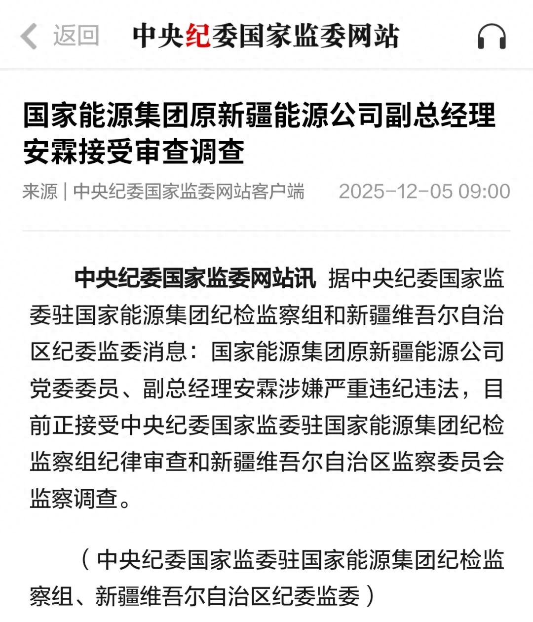 国家能源集团新疆能源公司原副总经理安霖,正在接受审查调查。这不是一个孤立的信号,它指向一个更根本的问题:为什么手握重权的能源企业高管,会成为腐败的高危群体?