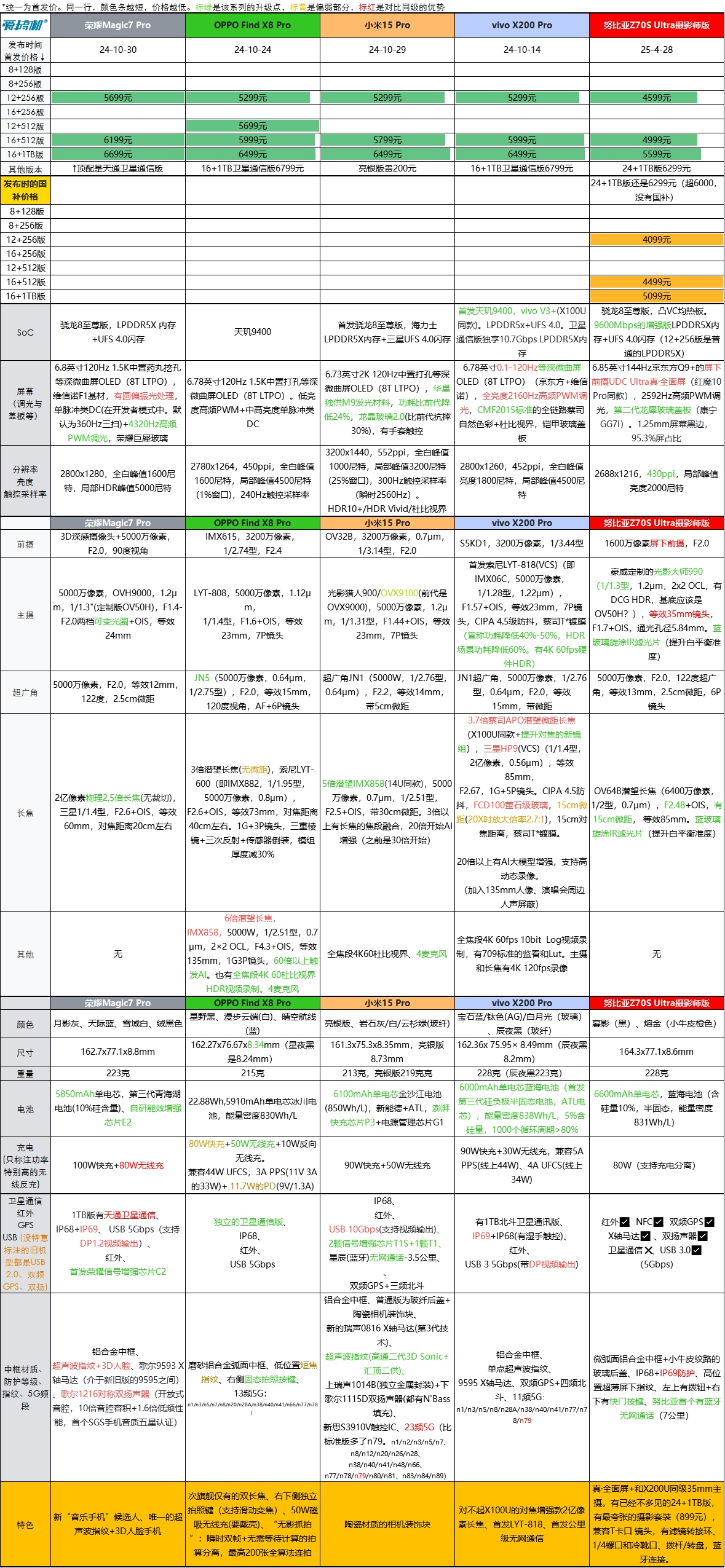 【努比亚Z70S Ultra摄影师版】与小米15 Pro、vivo X200 Pro、OPPO Find X8 Pro、荣耀Magic7 Pro对比↓。