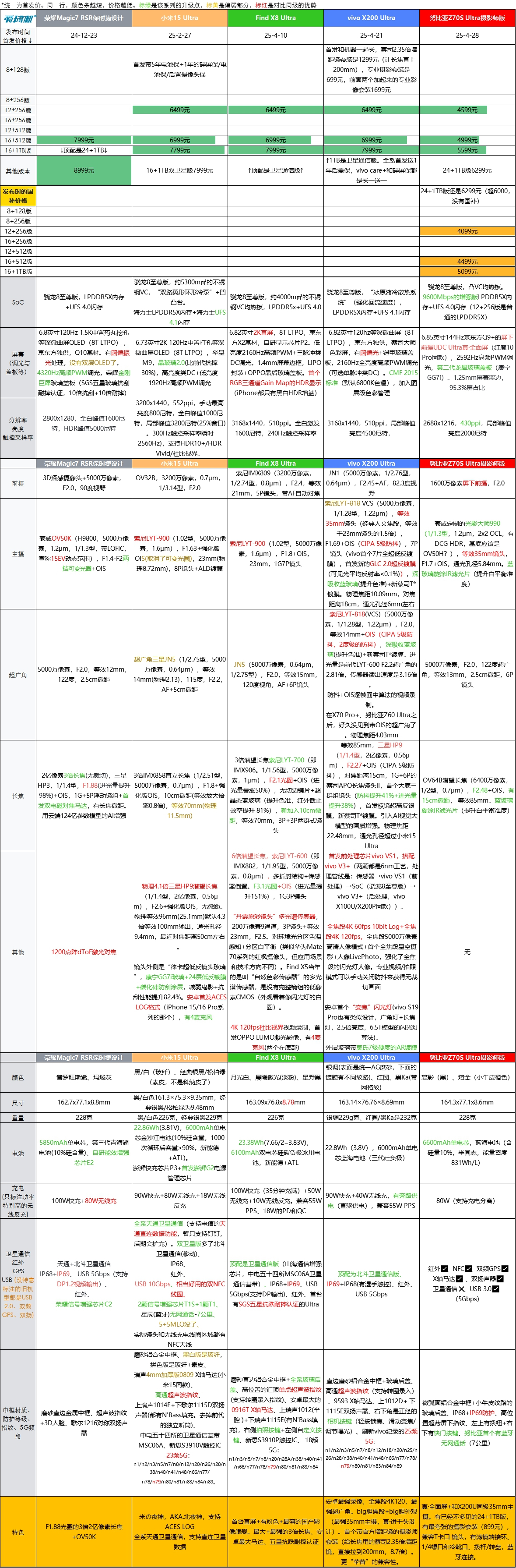 【努比亚Z70S Ultra摄影师版】与努比亚Z60S Pro、Z50/Z50S Ultra、Z60 Ultra领先版、Z70 Ultra对比与小米15 Ultra、vivo X200 Ultra、OPPO Find X8 Ultra、荣耀Magic7 RSR对比↓