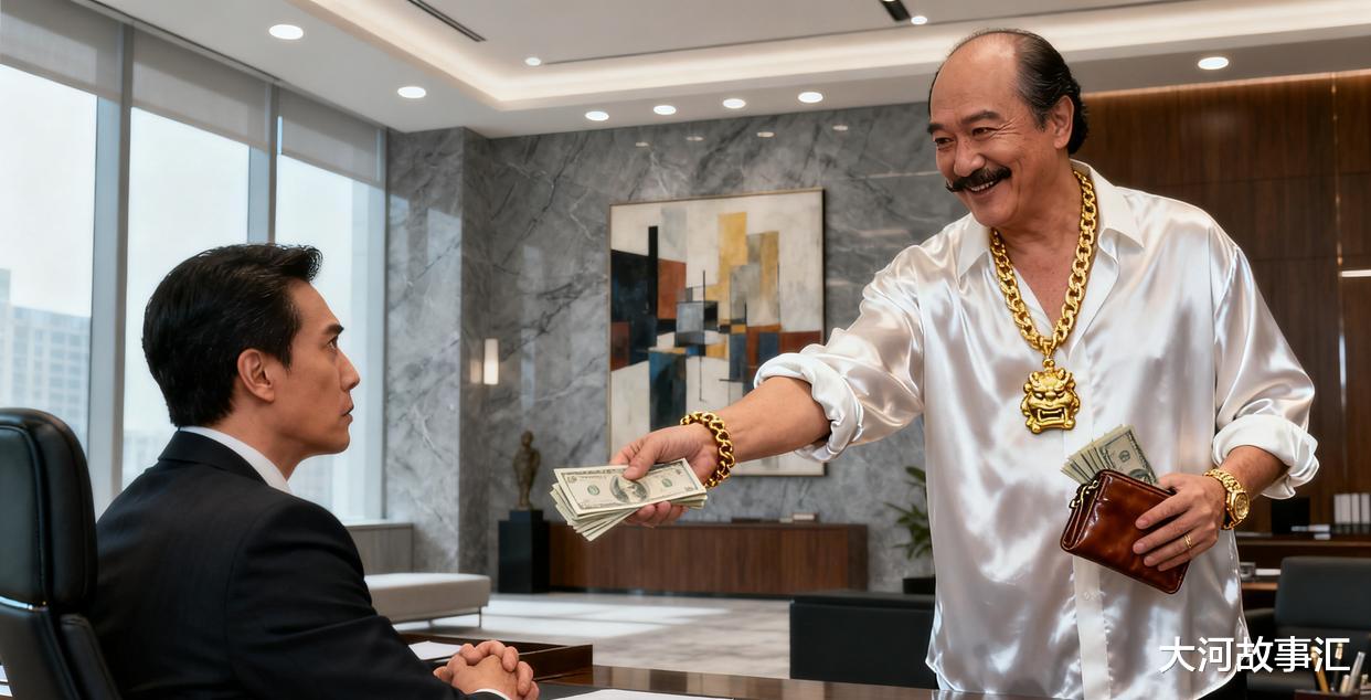 他故意让袖口滑下半寸,露出那块9.9包邮的“劳力士”——表蒙子上粗劣的“防伪”贴纸已经卷边,蹭得那件八十块从二手市场上淘来的真丝衬衫起了层细小的白屑。衬衫左胸口袋内侧隐隐留着墨渍,还形状模模糊糊,像个不完整的“贪”字。