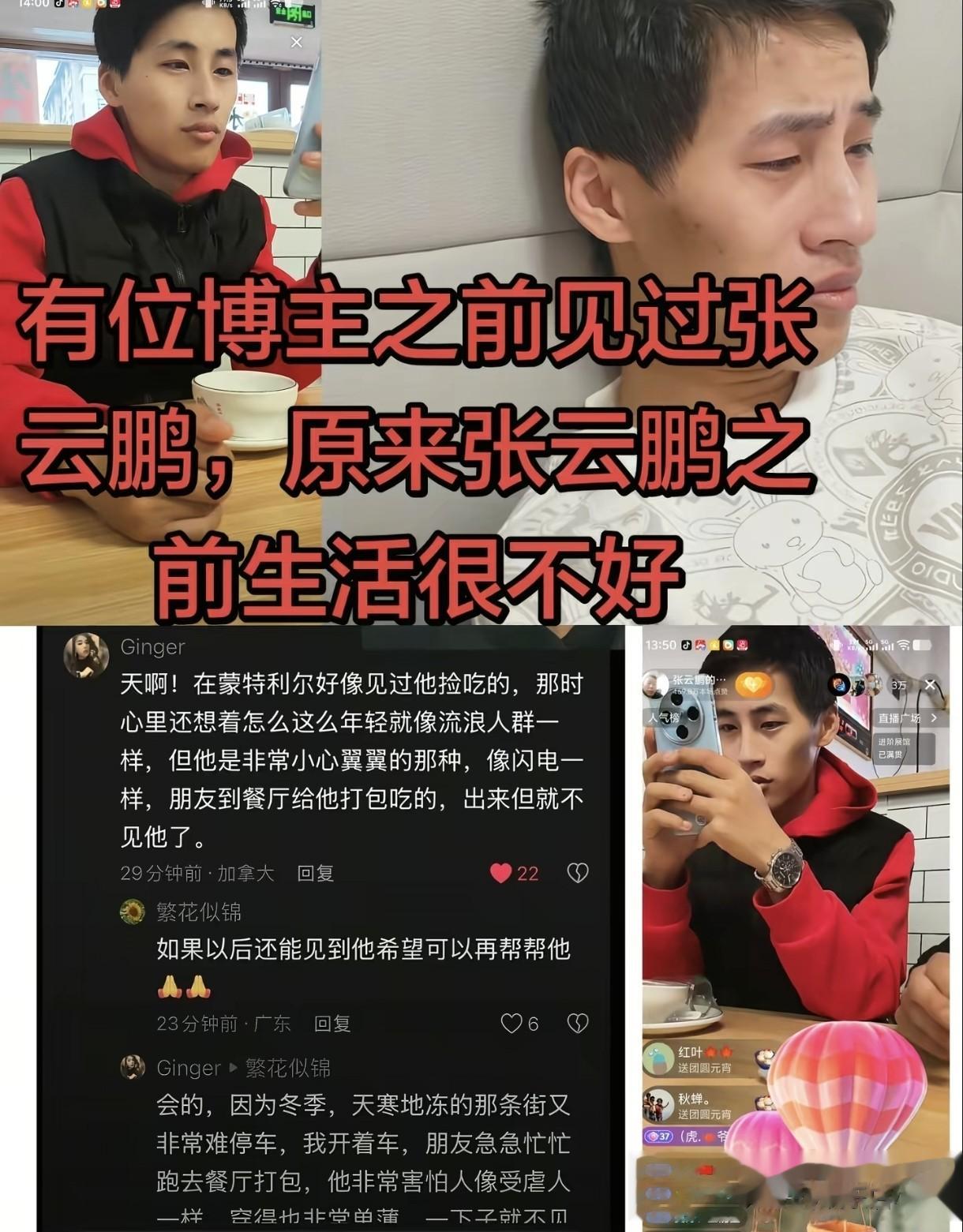 之前曾有网友说,在蒙特利尔看见张云鹏捡吃的。