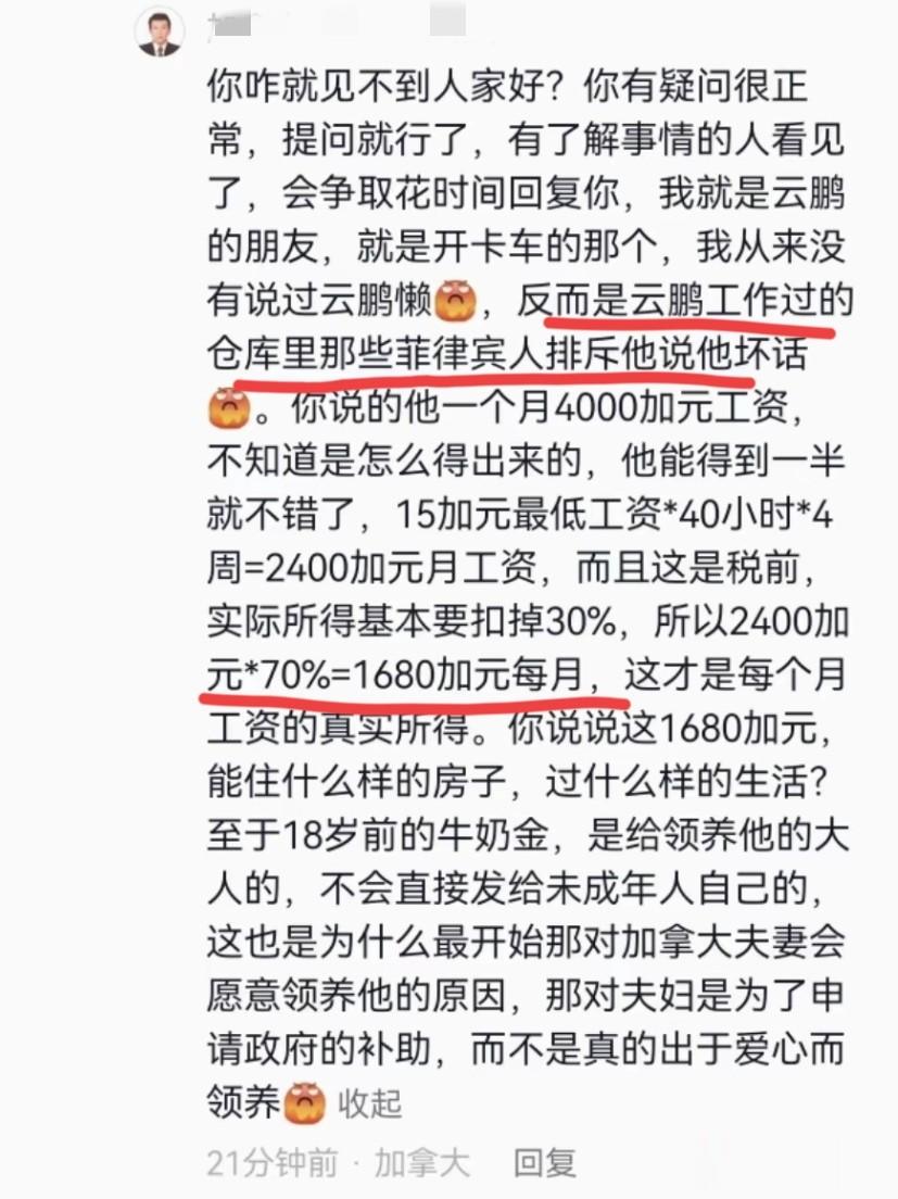 那他在加拿大真实的生活状态是怎么样的呢?张云鹏的好友透露了他的实际情况。