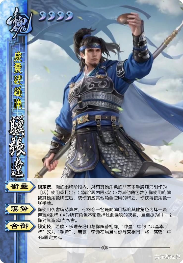 骥张辽的【冲垒】类似SP赵云的【冲阵】,都是能偷对方牌,不过骥张辽的发动条件要低太多太多,一张杀拍过去,对方闪也不是不闪也不是,人数限制次数本质上也是在平衡骥张辽的上限。