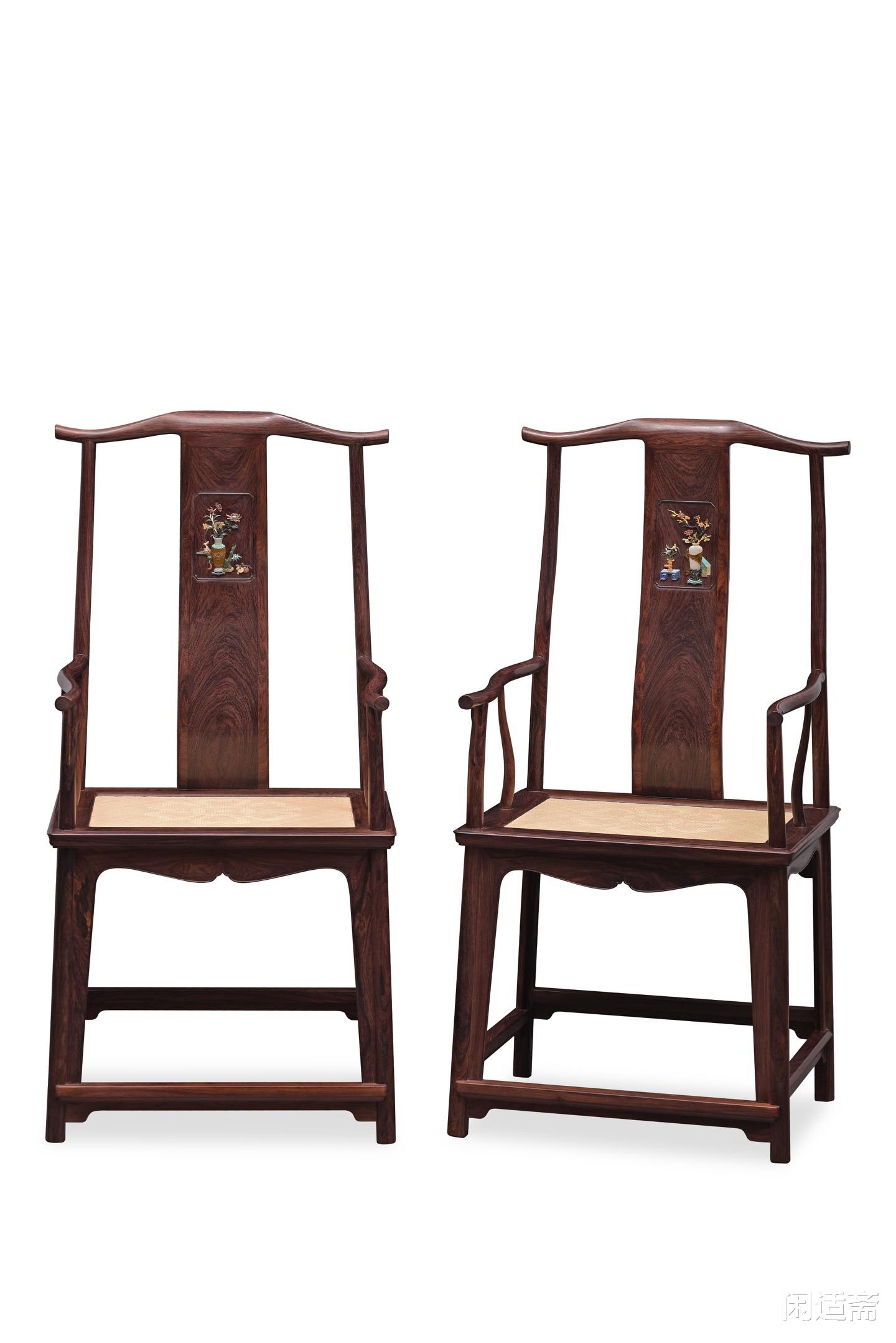 此对四出头官帽椅选料奢阔、工艺繁复,将顶级海南紫油梨老料、精湛百宝嵌绝技与明式风骨完美融为一体,不仅代表了当代仿古家具的最高工艺追求,更承载着中华传统文化的深厚底蕴。成对陈设于厅堂,既显对称雅致的中式美学,又能彰显主人的品味与气度,是兼具实用、收藏与传承价值的厅堂重器,堪称传世典藏之选。