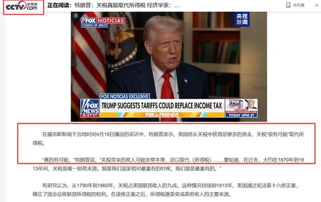 据外媒报道,特朗普曾在本月表示他们的关税收入可能会取代所得税。