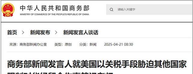 如果有国家在与美国谈判中,妄图以牺牲与中国正常合作利益为代价,换取美国关税豁免。