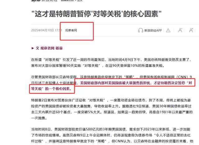 最近,多家外媒的爆料,透露出特朗普暂缓“对等关税”的原因似乎不只是美债问题!