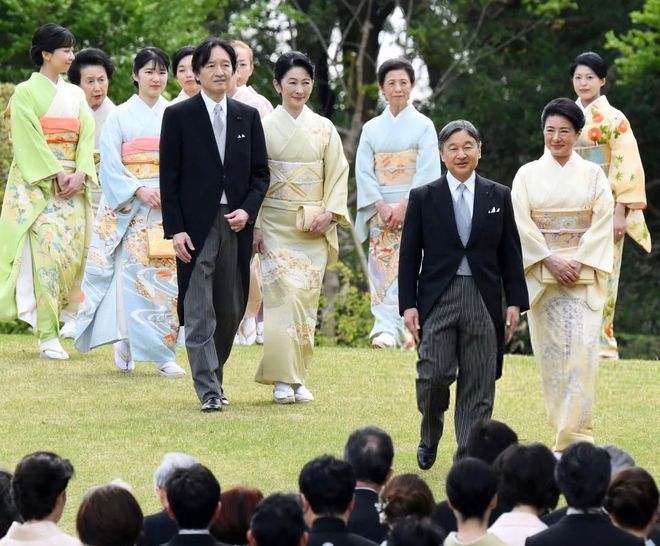 当地时间4月22日,日本天皇德仁和皇后雅子,在东京赤坂御苑举办了2025春季游园会。