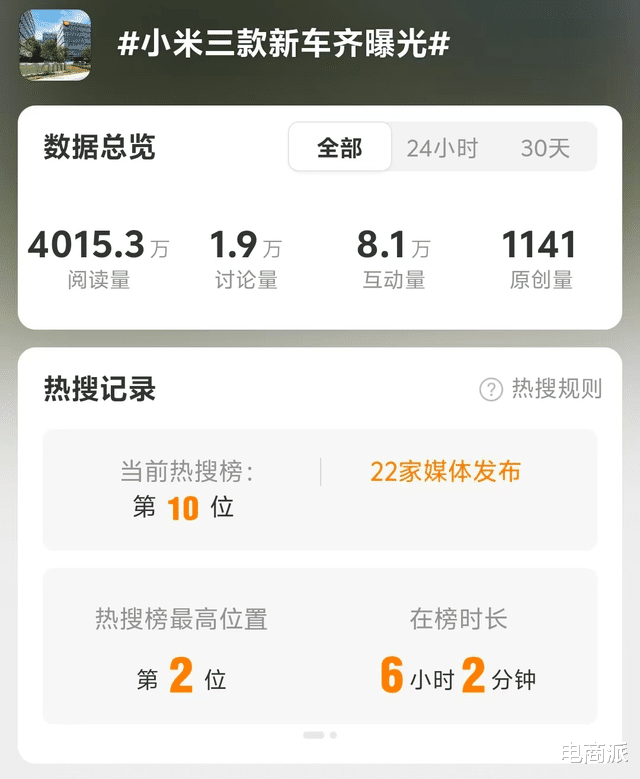 这一消息迅速引爆网络,话题“小米三款新车齐曝光”直接冲上微博热搜,瞬间点燃全网讨论热情,相关话题的关注度持续攀升。