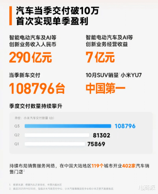 与此同时,市场认可度也在持续提升:10月,在我国SUV销量排行榜上,小米YU7成功登顶,拿下销量第一的好成绩。