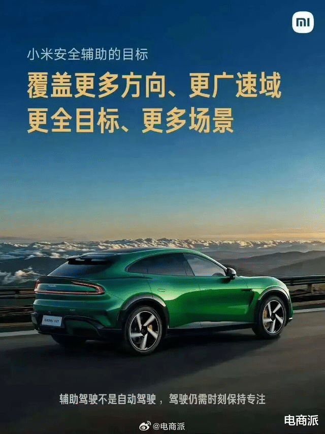 在小米最新发布的宣传海报中,以往“小字免责”的套路已被彻底摒弃,取而代之的是放大加粗的温馨提示:在安全辅助功能升级的系列海报中,“辅助驾驶不是自动驾驶,驾驶仍需时刻保持专注”的字样清晰醒目,传递出明确的安全警示。