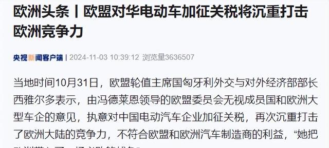 就拿电动汽车关税风波来说,冯德莱恩打着“守护欧盟产业”的旗号,对华电动汽车加征关税。