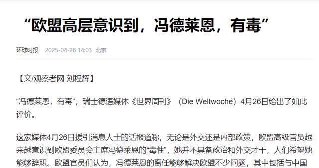 最近,国际政坛可是炸开了锅,瑞士媒体毫不留情,直接用“有毒”一词来形容欧盟委员会主席冯德莱恩。