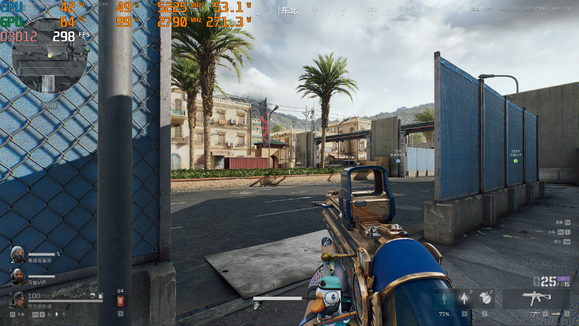 2K分辨率+最高画质+120渲染,游戏帧数最低160+FPS,最高230+FPS,平均基本保持在190FPS以上。