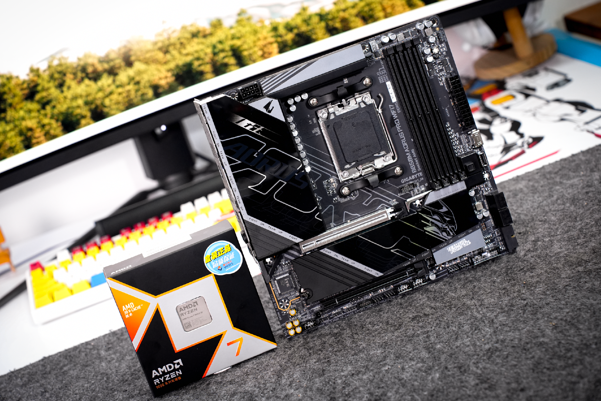 用来配搭AMD Ryzen 7 9800X3D的主板我依然用的是“老熟人”——技嘉B850M AORUS PRO WIFI7电竞雕主板,也就是技嘉B850M电竞雕主板。之前是一直用该主板配搭AMD 锐龙7 9700X给小伙伴装机使用,据用过的小伙伴反馈都是清一色的好评。