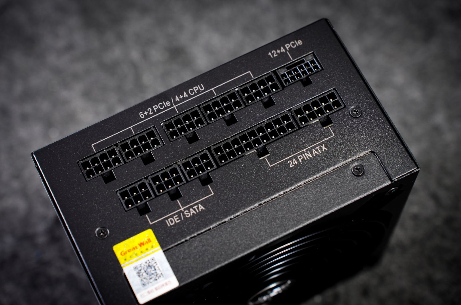 接口方面,全模组布局也一目了然,其中CPU+PCIe一共有5组接口,IDE与SATA有3组接口,再加上24Pin的主板供电和一组12VHPWR接口,能够轻松满足单卡旗舰平台的供电需求。