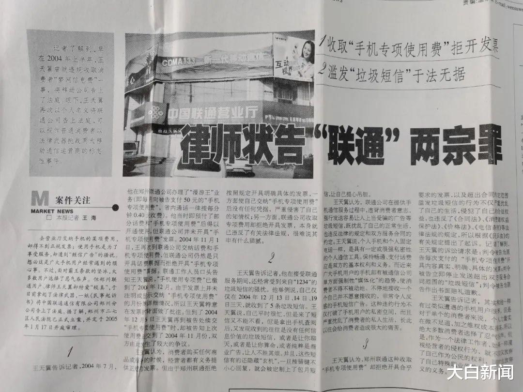 此外,王天翼自己还以消费者的身份起诉过移动、联通、电信等三大运营商以及双汇、金龙鱼等商业巨头,成为媒体当时争相报道的维权代表人物,一时风光无限。