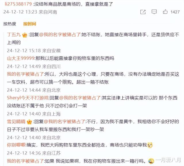 还有网友评论说:没有结账的商品就是商场的,直接拿走就行。