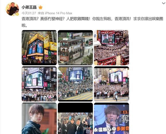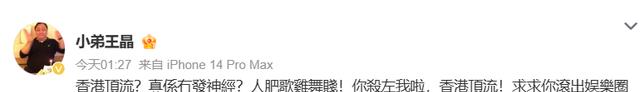 4月12号晚上1点半左右,导演王晶突然在社交平台上发文称,“香港顶流?真不是在发神经?人肥歌鸡舞贱!你吓死我啦,香港顶流!求求你滚出娱乐圈啦。”