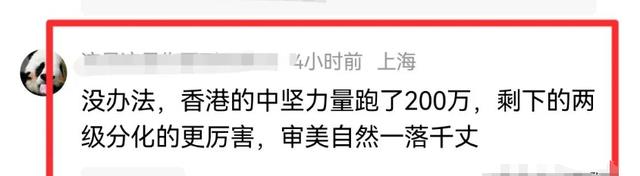 也有网友做出了回答,“没办法,香港的中坚力量跑了200万,剩下的两级分化的更厉害,审美自然一落千丈。”