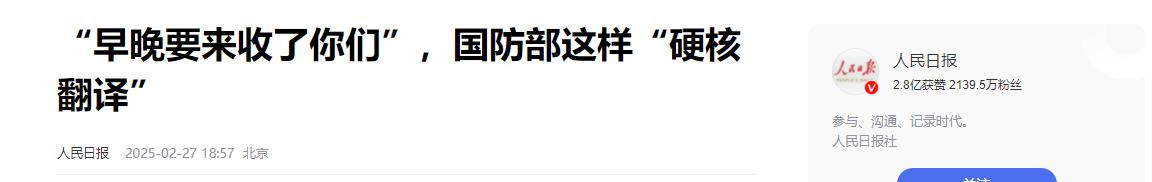 2月27日下午,国防部新闻发言人吴谦大校在例行记者会上对民进党当局说出了这八个字,并警告美方某些人别想在台湾问题上“偷鸡”。