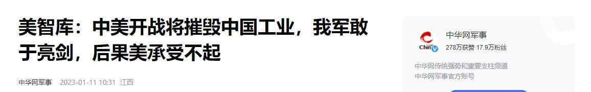 在这次智库预测后,其实在2023年1月,美国智库再次发布所谓台海局势兵棋推演,这次,智库指出:如果中美在台海发生冲突,美国将在不到7天的时间内耗尽关键的远程精确制导武器及弹药。
