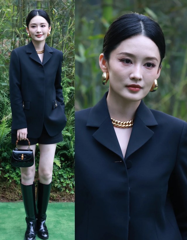 李沁最近好像比较低调,很少参加这类时尚活动。不过这次亮相还是让人眼前一亮,一件黑色修身西装配黑色短裤,再加上中筒靴,整体造型沉稳大气又时尚,一出场就让人感觉气场好强。
