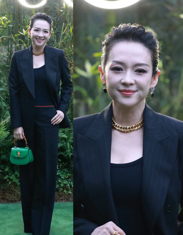 而且一身黑色西装配阔腿裤,看上去又美又飒,感觉跟20多岁的时候都没啥区别。但是,一到生图可就不一样了。