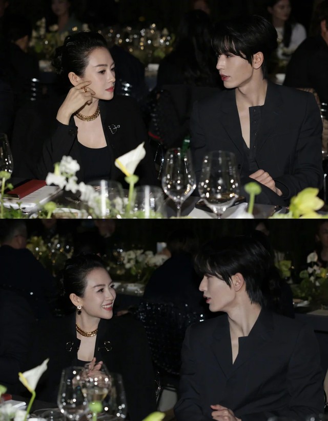 而且活动晚宴上,张凌赫还和章子怡坐在一起热聊呢,把姐姐逗得咯咯直笑。