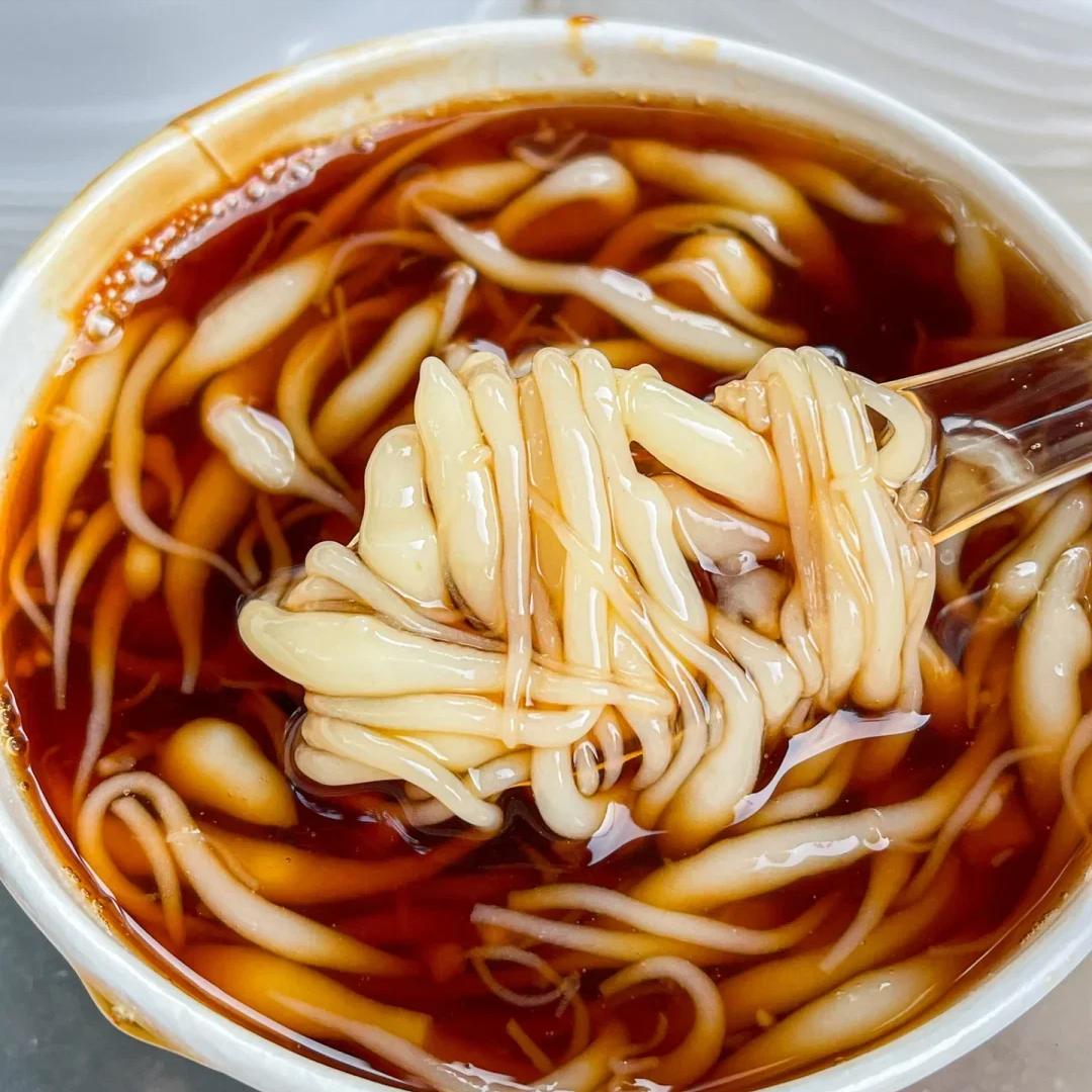 凉虾,这可是重庆夏天消暑的神器。它看起来就像一只只小虾,晶莹剔透,非常可爱。凉虾的制作方法很简单,把大米磨成浆,然后用漏勺滴入开水中,就形成了一个个小虾形状的凉虾。