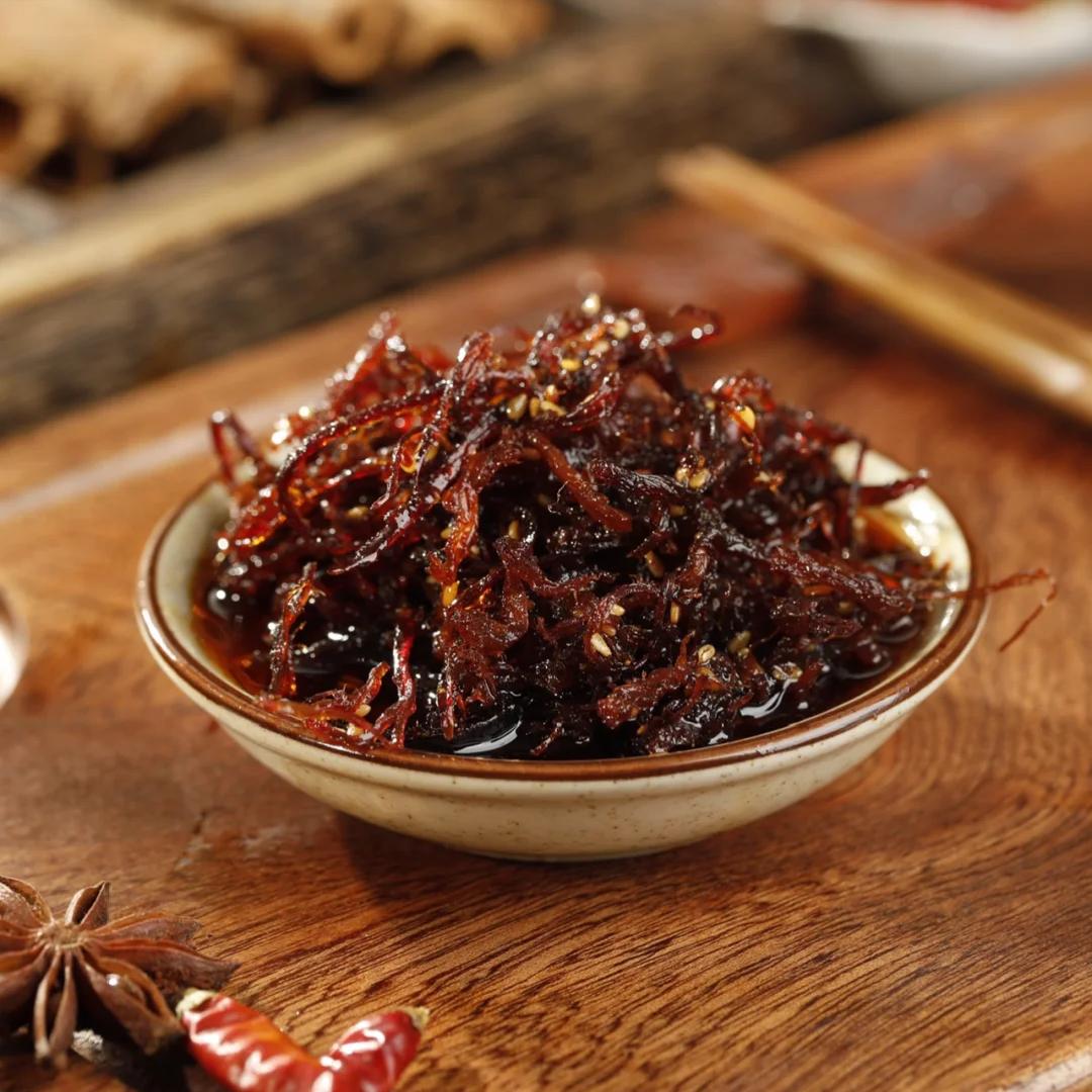 灯影牛肉丝,这道美食有着悠久的历史。它起源于清朝末年,是四川达县的传统名菜,后来在重庆也广为流传。灯影牛肉丝之所以叫这个名字,是因为它的牛肉片薄如纸,透过灯光可以看到牛肉丝的影子。