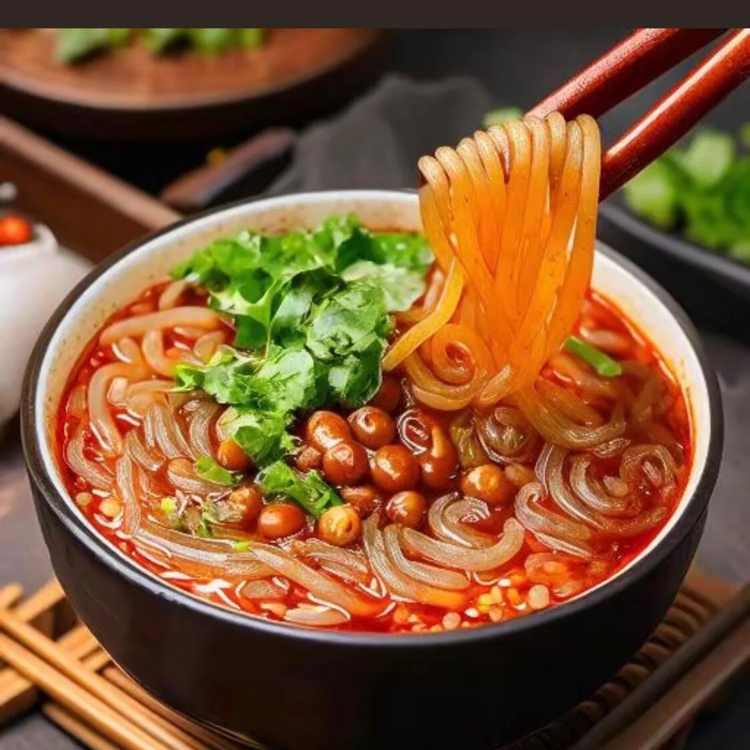 酸辣粉,那也是重庆的一张美食名片。它起源于川西一带,后来传入重庆,经过重庆人的改良,就变成了现在这种独特的味道。酸辣粉的粉是用红薯粉做的,吃起来QQ弹弹,特别有嚼劲。