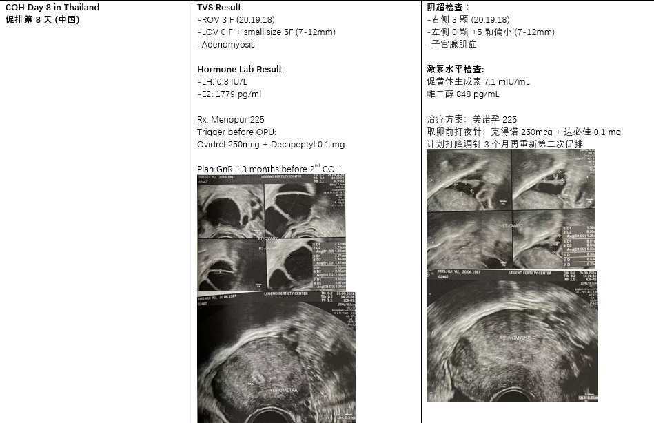 促排第8天的时候,右边卵泡有3颗(20,19,18),左边只有5颗偏小的(7-12mm),子宫腺肌症还在。激素水平促黄体生成素变成了0.8IU/L,雌二醇达到了1779pg/ml。医生说:“现在卵泡发育得还可以,我们继续加油,不过取卵之后,你得打3个月的GnRH针,抑制一下卵巢功能,这样能让子宫环境好一些,有利于胚胎着床。”