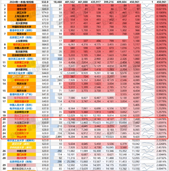 2024年,广以录取分数在600分以上的新生显著升高,录取排位显著提升,平均进位近7000名,最低排名跃升20%,所以总结来说,广以实现的是招生人数和招生质量、录取分数线和录取位次的全面上升。