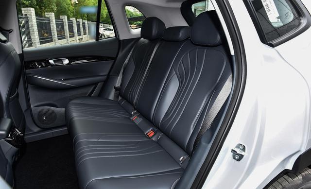 银河E5同样是5座布局,座椅贴合人体坐姿,海绵层厚实,包裹感和支撑感不错。主驾驶位座椅电动调节,副驾驶位手动调节,没有座椅加热和通风功能,后排也没有中央扶手。主驾驶位头部空间有一拳半,后排头部空间有一拳,腿部空间有两拳半,461L的常规后备厢容积也能满足日常需求,不过没有电动后尾门。