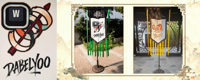 此次合作中,张雪将千年吉祥纹样融入战旗设计,箭头穿破圆环象征着突破自己,双星代表卫冕的荣耀,盾牌代表信念,麦穗代表精神,萌芽代表新生力量,还有火焰、水浪、螺钿云等等,每一个细节都有着深远意义,让这份充满中国浪漫的祝福旗帜可以为电竞战队们带来胜利的风声,化身冲锋的铠甲,陪伴战队们在赛场上英勇冲锋。关于战旗logo队友们也有自己的想法,把电竞的热血和苏绣的精致完美结合。