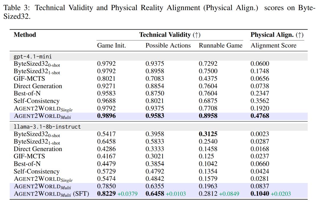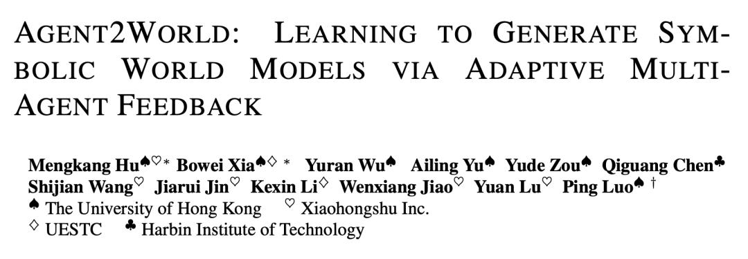 论文地址: https://arxiv.org/abs/2512.22336 项目地址: https://agent2world.github.io/ 模型地址: https://huggingface.co/agent2world/llama3.1_8b_instruct_full_sft_v1_3_epoch 代码地址: https://github.com/DeepExperience/agent2world
