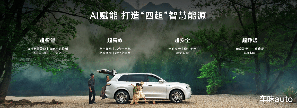 在AI赋能下,问界打造了“超智能、超高效、超安全、超静谧”的智慧增程电动技术解决方案。该方案以高集成度的高压架构为底座,让增程与电驱进行深度智能融合,使车辆工作在最经济的区间;通过车电机充一体化设计,提供最佳的度电里程,实现续航无忧;通过800V及以上的高压架构、八合一电驱设计、5C超充以及全国超充网络建设,带来高效出行和极速补能新体验,同时高效增程提供1.5T和2.0T动力选择。