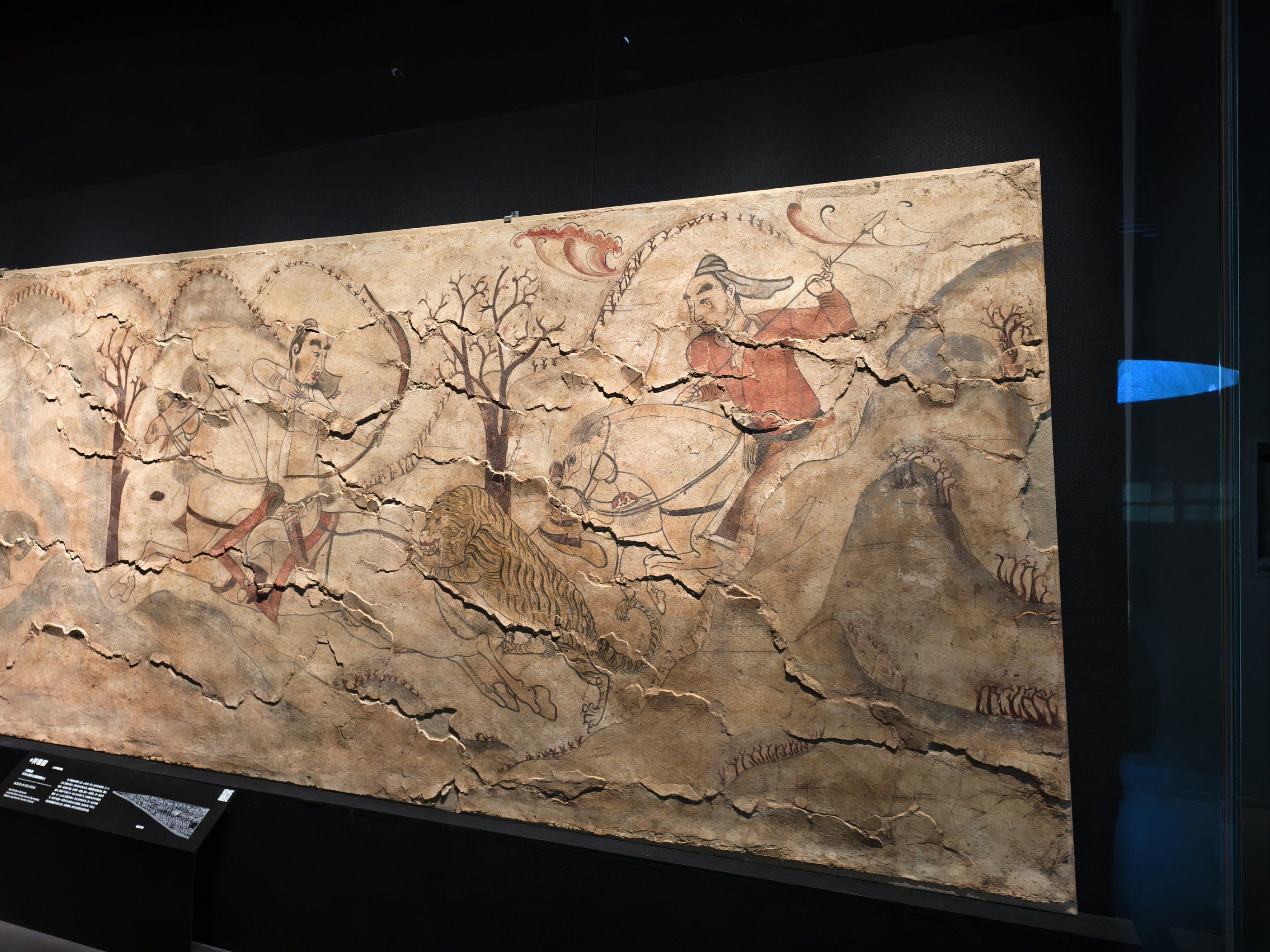 亮点1:娄睿墓《鞍马出行图》——“北齐画圣的‘教科书级’力作”规模震撼:全长27米的连环画式长卷,绘200余人物、50匹战马,再现北齐大将军娄睿出行的浩荡场面;