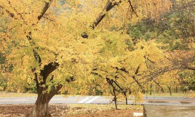 满山的银杏树,金黄的叶片在阳光??下闪耀,特别梦幻,脚下的银杏叶洒满了我们走过的路,还有很多古银杏树,特别是那棵3000多年树龄的银杏王,让我大开眼界,这棵树不像其他千年古木一样笔挺高大,反而是盘枝错杂。