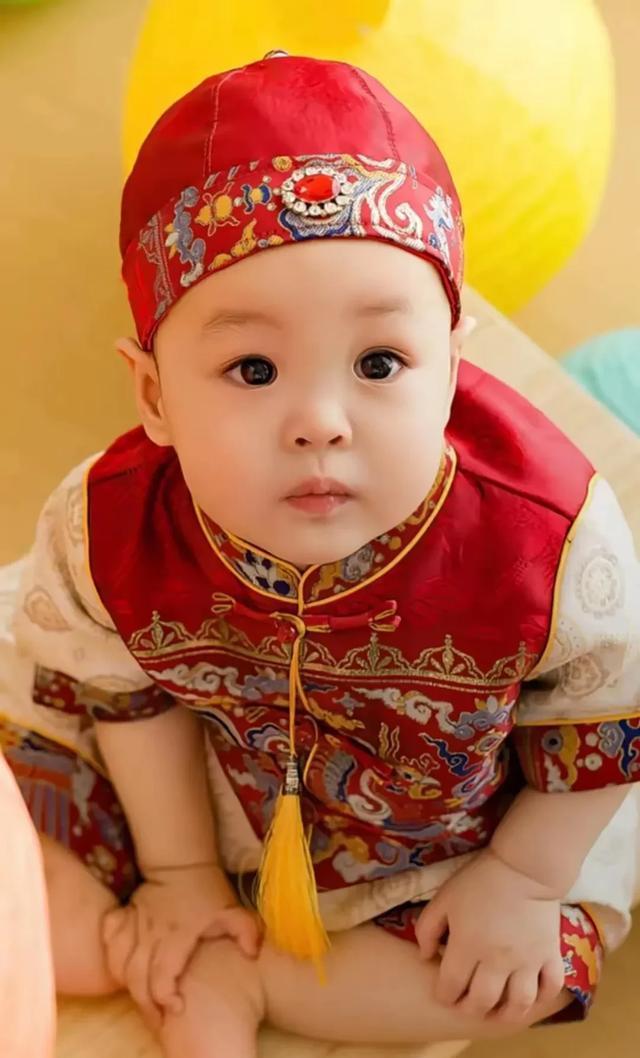 这小宝贝啊,可是金龟子的心头肉。金龟子对这个外孙那叫一个宝贝得不行,只要一有空就忍不住要抱起他一起玩耍。你看这小外孙,长得白白胖胖的,就像一个圆润的小团子,一双大眼睛忽闪忽闪的,就像藏着小星星。身上穿着新中式红色绸缎的衣服,这一打扮呀,活脱脱就是一个从年画里走出来的可爱娃娃。