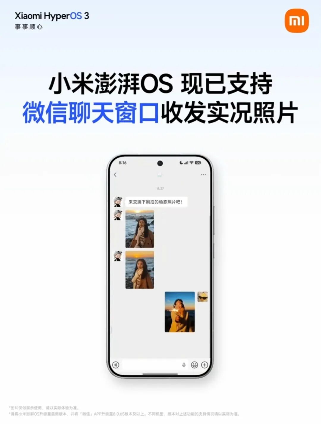 魅族和小米,目前也支持微信聊天收发实况照片了,前几天OPPO和vivo也官宣支持该项功能,基本上是全量推送,不再是以前的灰度测试。