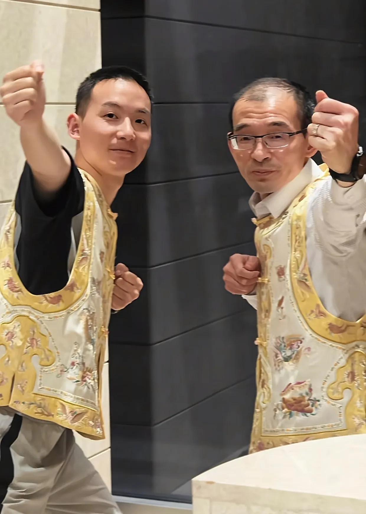 谢家价值六位数的刺绣唐装绝非普通亲子装。眼尖的网友发现,谢浩男所穿黄马褂的盘扣暗纹,正是谢爸公司2025春夏高定系列的标志性设计。