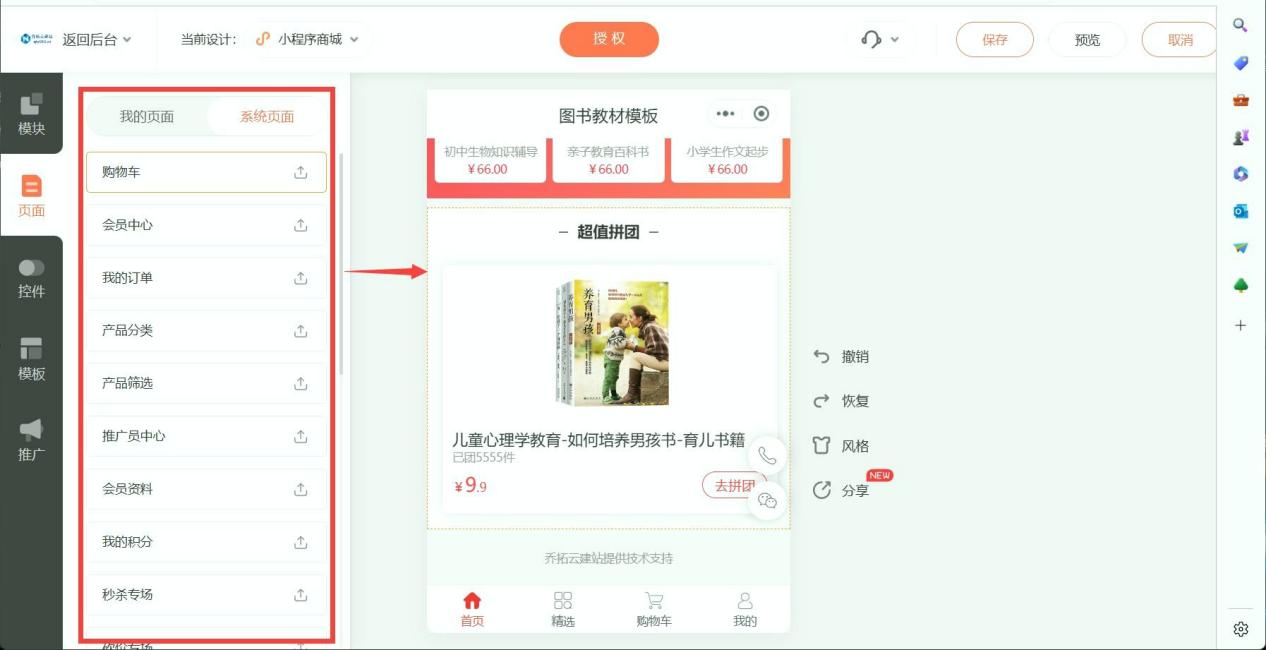 模板化操作流程简洁,基础版入门成本较低,拥有2000多套模板,侧重电商基础展示与交易功能。其优势在于上手难度较低,审核流程高效,适合仅需基础线上展示与简单交易功能的小型商家,如初创奶茶店、小型社区花店等。