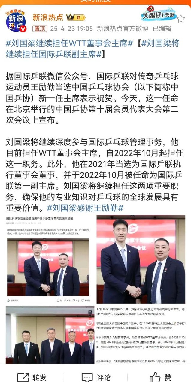 这两人在私底下也是关系相当不错的朋友,相信两个人私底下肯定也会针对乒协的发展进行一定的讨论。