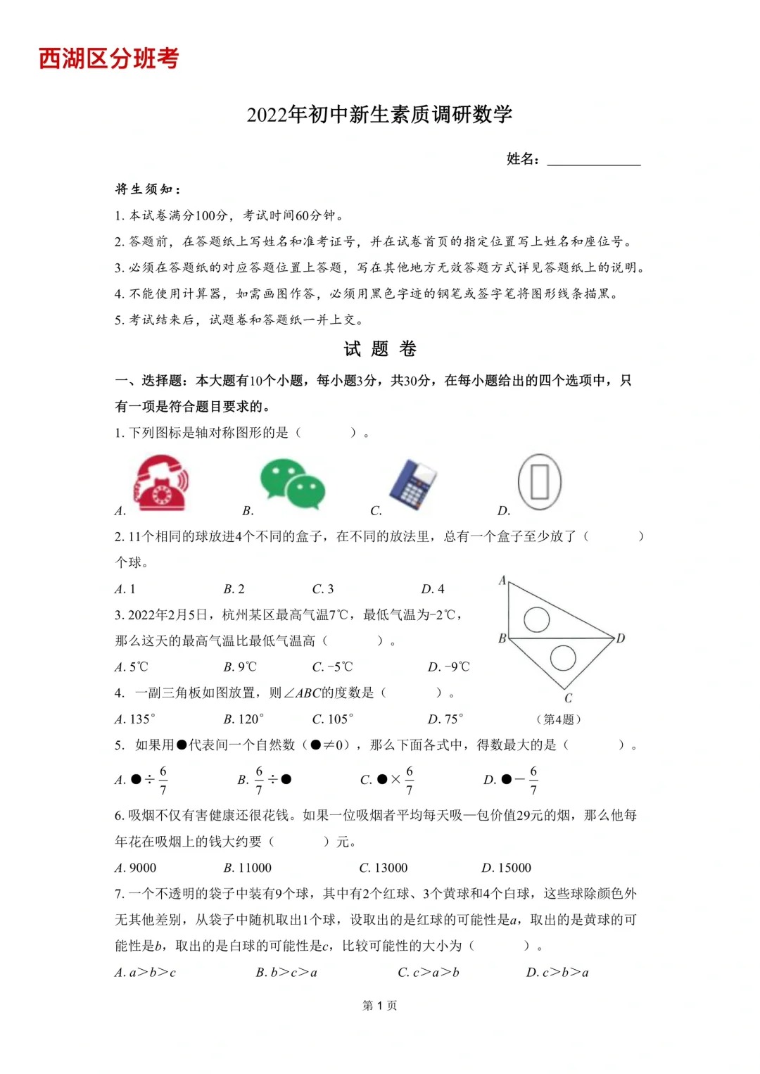 想查看以前的“杭州”小升初试卷,请进入我的主页,搜索“杭州”即可