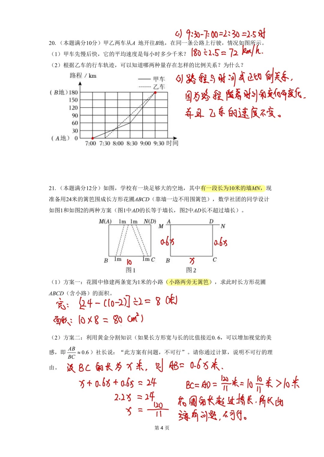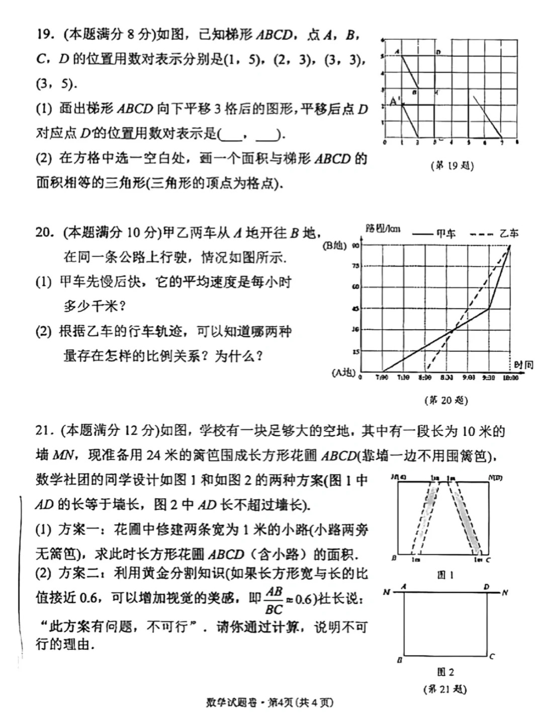 ,本试卷满分100分,考试时间60分。考试题型有:选择题30分、填空题24分、解答题共46分(主要有计算、统计图应用、图形的旋转和移动、行程st图、平面图形面积计算等)