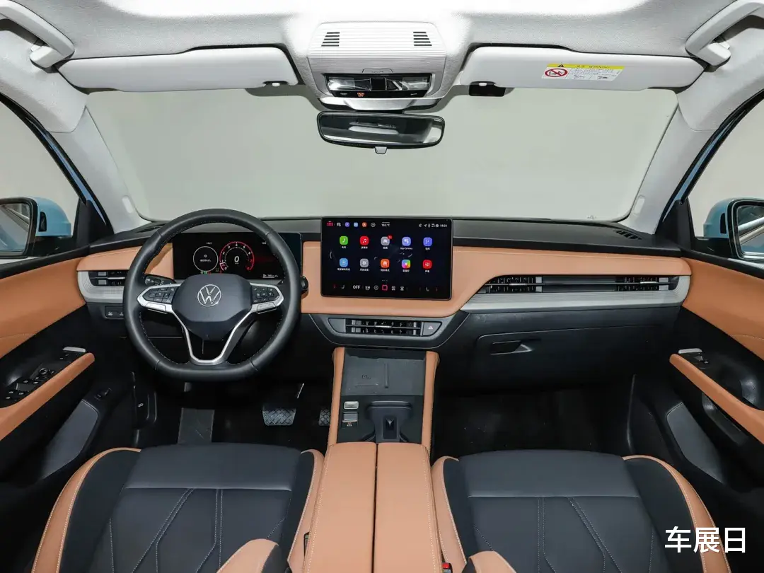内饰方面,该车提供三辐式多功能方向盘,15.6英寸和12.3英寸悬浮式中控屏可选,采用浅棕色+黑色配色,多处细节镀铬点缀,营造出了一定的豪华感。