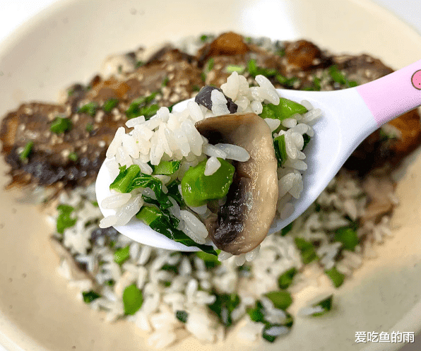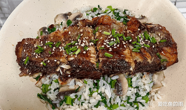 等电饭煲跳闸,打开盖子,那股菌菇和青菜混合着米饭的清香扑面而来。盛出一大碗热气腾腾的菌菇菜饭,把烧好的大黄鱼排直接铺在饭上。再舀一勺锅里浓稠的蒲烧汁浇上去,让汤汁顺着鱼肉缝隙渗进米饭里。挖一勺送进嘴里,米饭软糯中带着菌菇的鲜美和青菜的清甜,鱼肉外焦里嫩,那蒲烧酱汁咸甜适口,浓郁得化不开。每一口都是大写的满足,鲜得你恨不得把舌头都吞下去,这一碗下去,真的是给个神仙都不换。